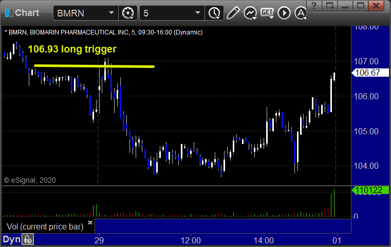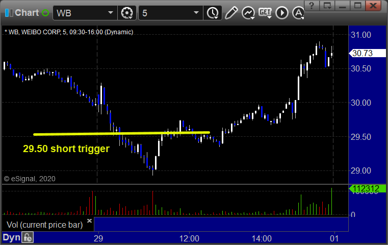 With each stock’s recap, we will include a (with market support) or (without market support) tag, designating whether the trade triggered with or without market directional support at the time. Anything in the first five minutes will be considered WITHOUT market support because market direction cannot be determined that early. ETF calls do not require market support, and are thus either winners or losers.