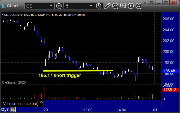 From the Messenger/Tradesight_st Twitter Feed, GS triggered short (with market support) and worked enough for a parital: