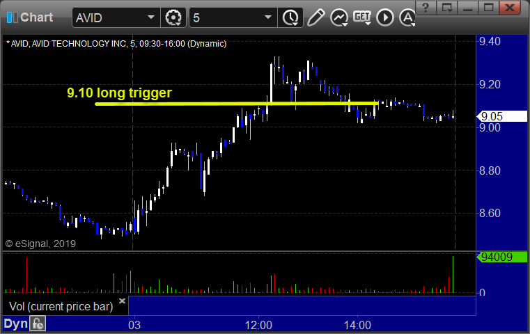 From the report, AVID triggered long (with market support) and worked enough for a partial: