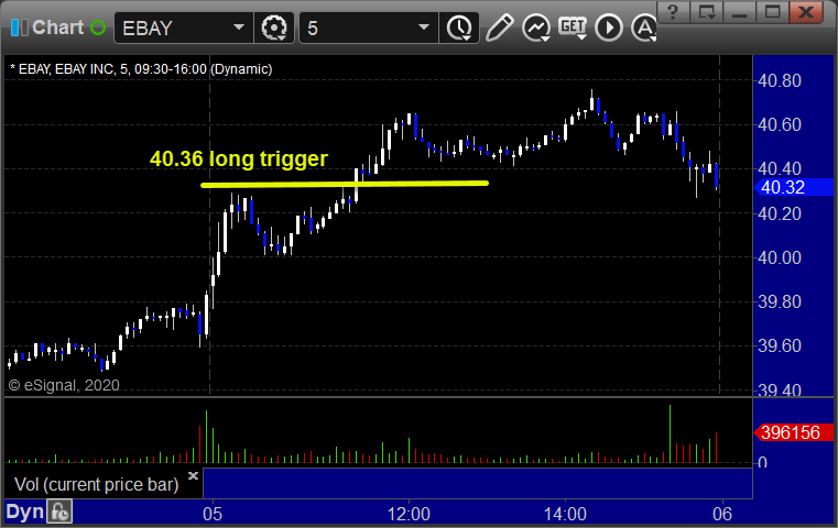 With each stock’s recap, we will include a (with market support) or (without market support) tag, designating whether the trade triggered with or without market directional support at the time. Anything in the first five minutes will be considered WITHOUT market support because market direction cannot be determined that early. ETF calls do not require market support, and are thus either winners or losers.