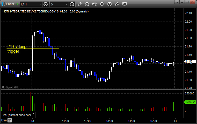 From the report, IDTI triggered long (without market support due to opening 5 minutes) and worked: