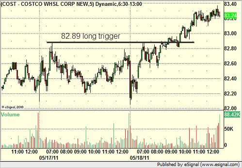 With each stock’s recap, we will include a (with market support) or (without market support) tag, designating whether the trade triggered with or without market directional support at the time. Anything in the first five minutes will be considered WITHOUT market support because market direction cannot be determined that early.