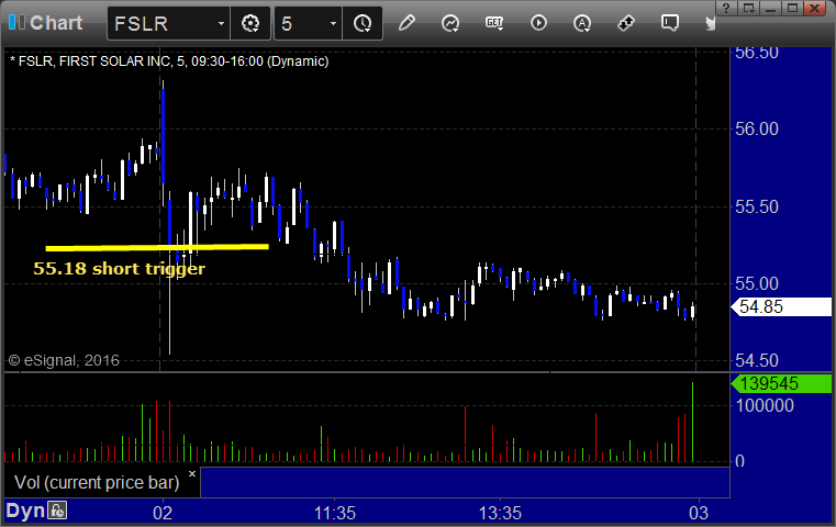 From the Messenger/Tradesight_st Twitter Feed, FSLR triggered short (with market support) and worked: