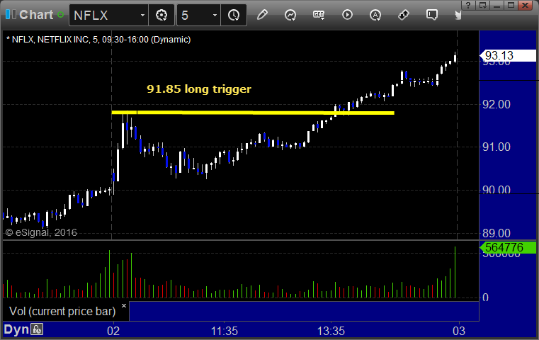 With each stock’s recap, we will include a (with market support) or (without market support) tag, designating whether the trade triggered with or without market directional support at the time. Anything in the first five minutes will be considered WITHOUT market support because market direction cannot be determined that early. ETF calls do not require market support, and are thus either winners or losers.