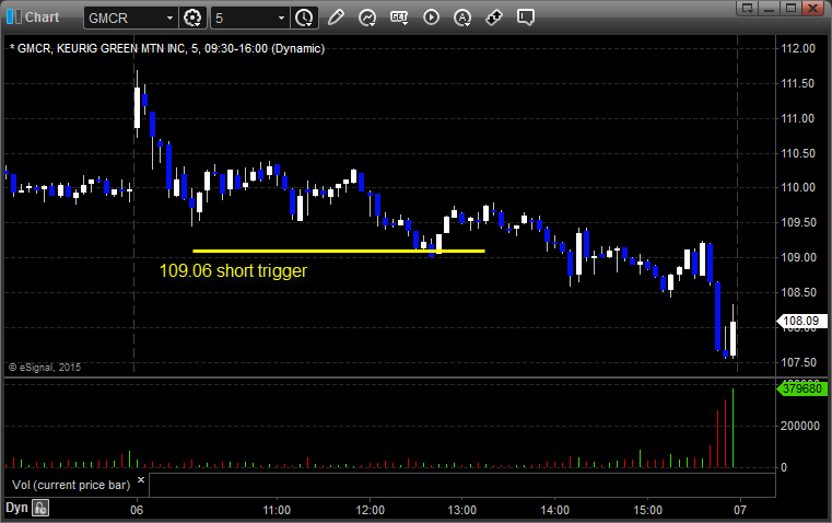 GMCR triggered short (without market support) and didn’t work on a sweep: