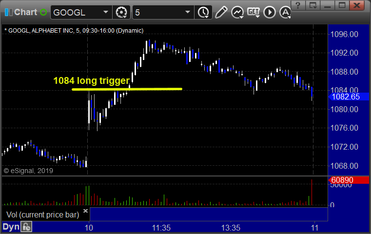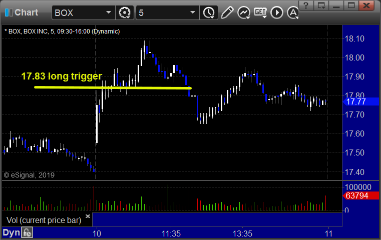 With each stock’s recap, we will include a (with market support) or (without market support) tag, designating whether the trade triggered with or without market directional support at the time. Anything in the first five minutes will be considered WITHOUT market support because market direction cannot be determined that early. ETF calls do not require market support, and are thus either winners or losers.