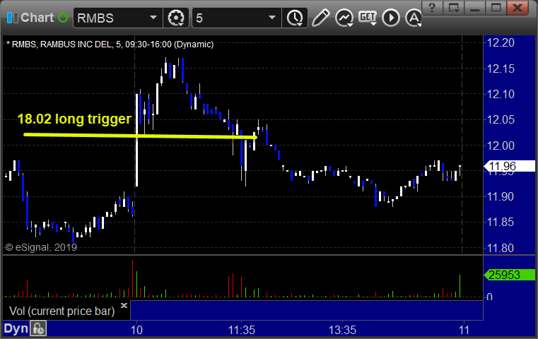 From the report, RMBS triggered long (without market support due to opening 5 minutes) and didn’t work: