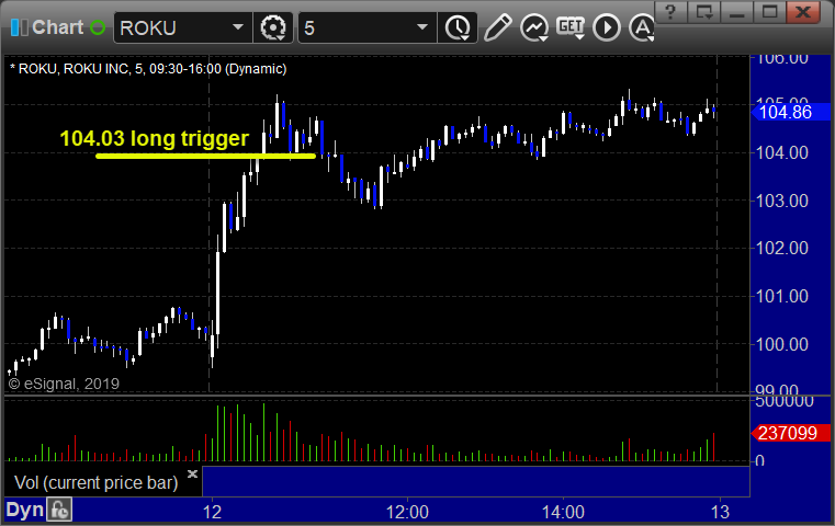 From the Messenger/Tradesight_st Twitter Feed, Rich’s ROKU triggered long (with market support) and worked: