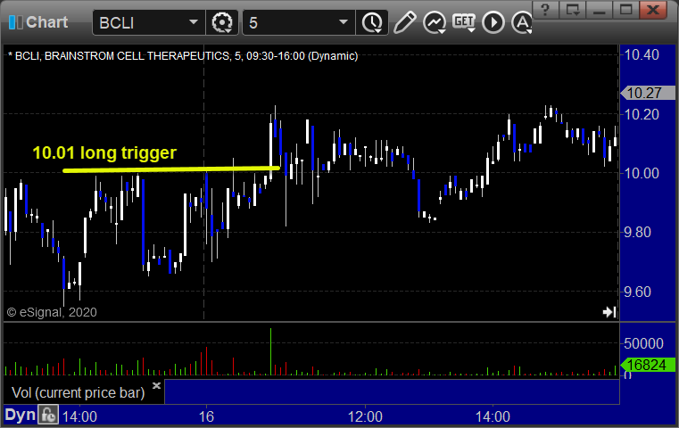 With each stock’s recap, we will include a (with market support) or (without market support) tag, designating whether the trade triggered with or without market directional support at the time. Anything in the first five minutes will be considered WITHOUT market support because market direction cannot be determined that early. ETF calls do not require market support, and are thus either winners or losers.