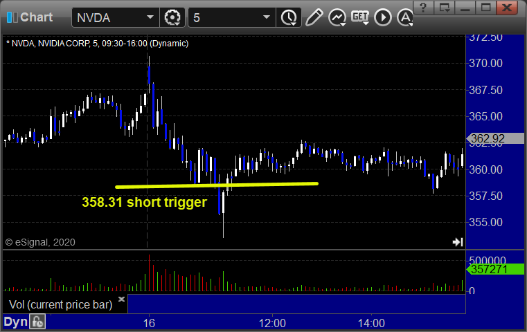 From the Messenger/Tradesight_st Twitter Feed, NVDA triggered short (with market support) and worked enough for a partial: