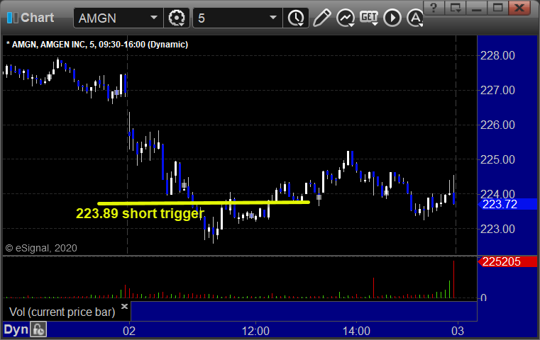 From the Messenger/Tradesight_st Twitter Feed, AMGN triggered short (with market support) and we will say it didn’t work: