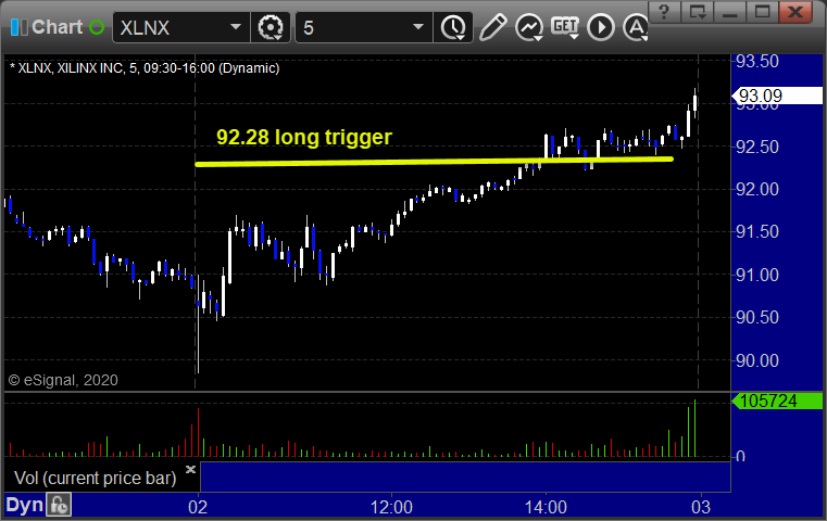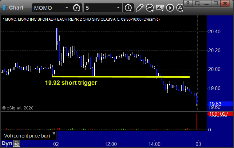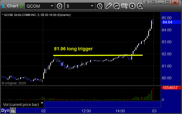 With each stock’s recap, we will include a (with market support) or (without market support) tag, designating whether the trade triggered with or without market directional support at the time. Anything in the first five minutes will be considered WITHOUT market support because market direction cannot be determined that early. ETF calls do not require market support, and are thus either winners or losers.
