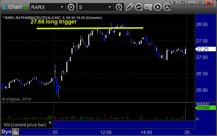 With each stock’s recap, we will include a (with market support) or (without market support) tag, designating whether the trade triggered with or without market directional support at the time. Anything in the first five minutes will be considered WITHOUT market support because market direction cannot be determined that early. ETF calls do not require market support, and are thus either winners or losers.