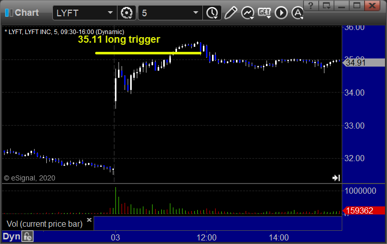 From the Messenger/Tradesight_st Twitter Feed, LYFT triggered long (with market support) and worked enough for a partial:
