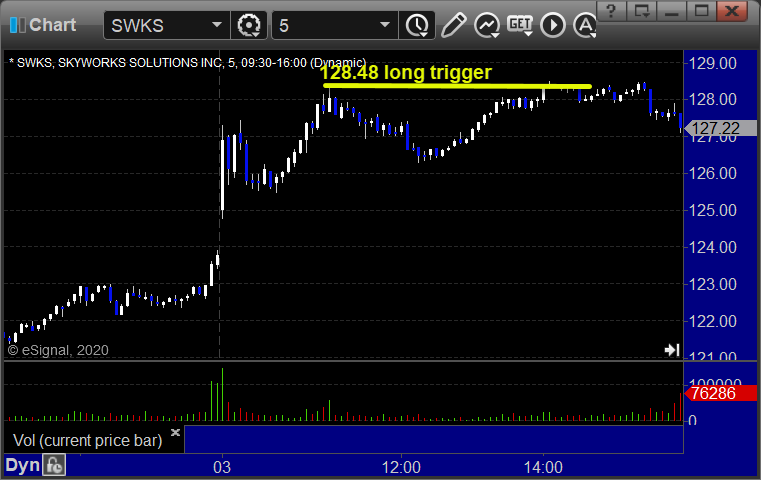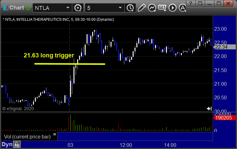 With each stock’s recap, we will include a (with market support) or (without market support) tag, designating whether the trade triggered with or without market directional support at the time. Anything in the first five minutes will be considered WITHOUT market support because market direction cannot be determined that early. ETF calls do not require market support, and are thus either winners or losers.