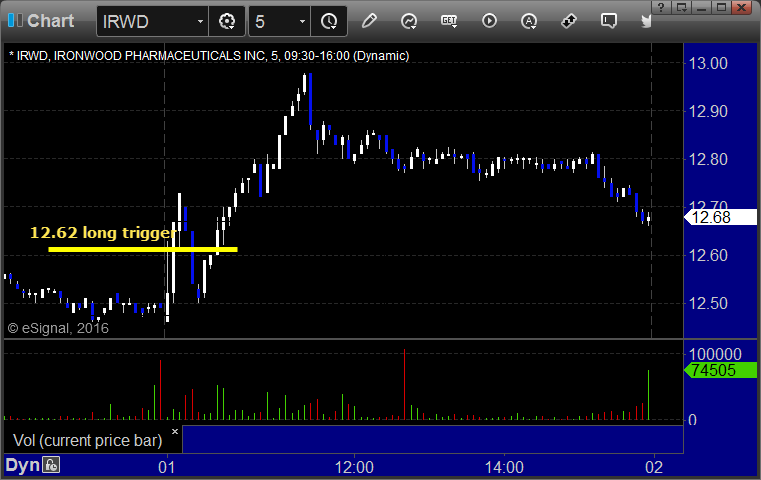 IRWD triggered long (without market support due to opening 5 minutes) and worked: