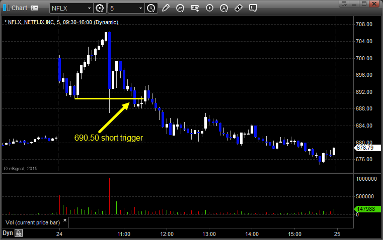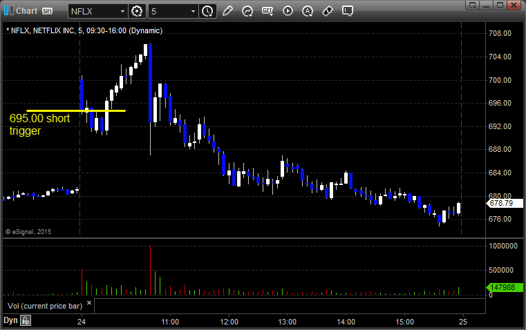 From the Messenger/Tradesight_st Twitter Feed, Rich’s NFLX triggered short (without market support due to opening 5 minutes) and worked: