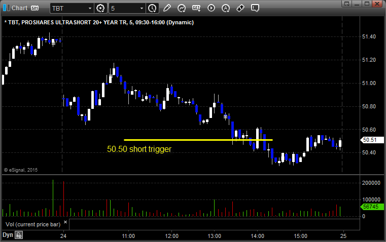 Rich’s TBT triggered short (ETF, so no market support needed) and worked:
