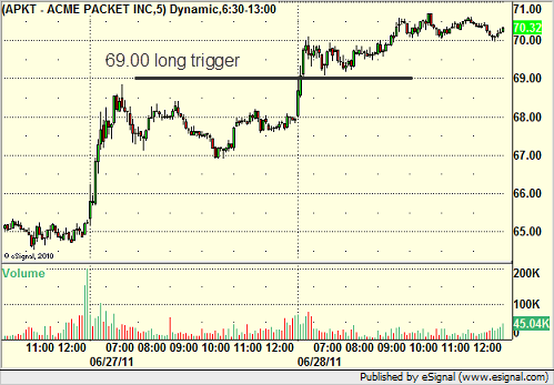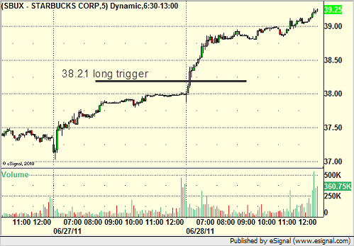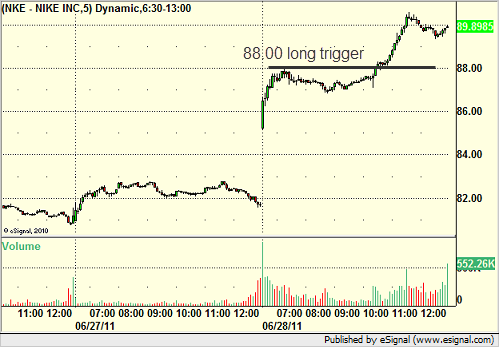 With each stock’s recap, we will include a (with market support) or (without market support) tag, designating whether the trade triggered with or without market directional support at the time. Anything in the first five minutes will be considered WITHOUT market support because market direction cannot be determined that early.
