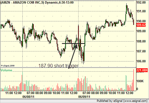 In the Messenger, Rich’s AMZN triggered short (without market support due to opening five minutes) and worked: