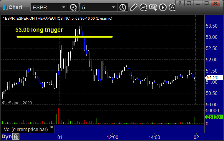 With each stock’s recap, we will include a (with market support) or (without market support) tag, designating whether the trade triggered with or without market directional support at the time. Anything in the first five minutes will be considered WITHOUT market support because market direction cannot be determined that early. ETF calls do not require market support, and are thus either winners or losers.
