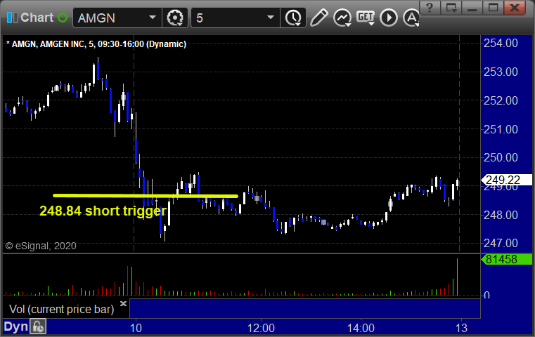 His AMGN triggered short (with market support) and worked enough for a partial: