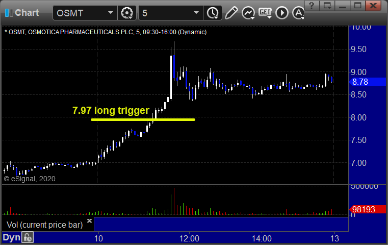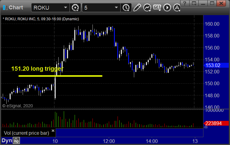 From the Messenger/Tradesight_st Twitter Feed, Rich’s ROKU triggered long (without market support due to opening 5 minutes) and worked great: