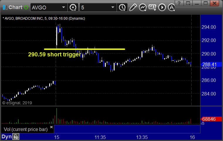 From the Messenger/Tradesight_st Twitter Feed, AVGO triggered short (with market support) and worked: