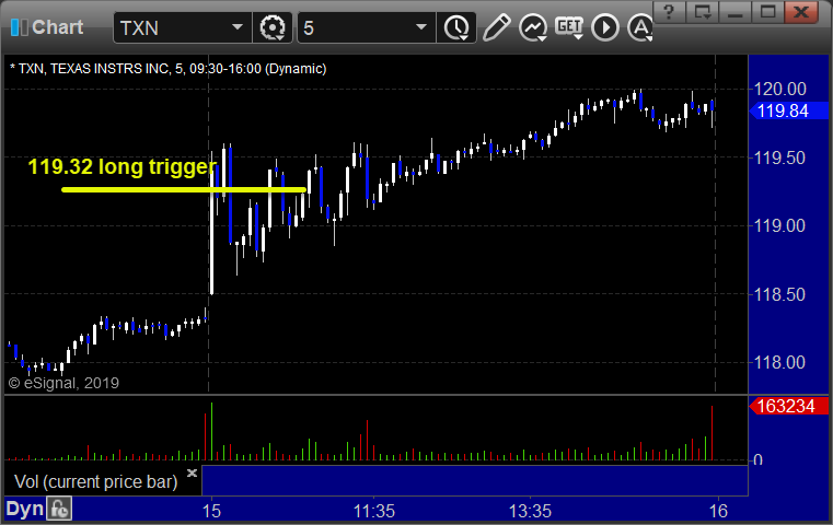 From the report, TXN triggered long (without market support due to opening 5 minutes) and eventually worked: