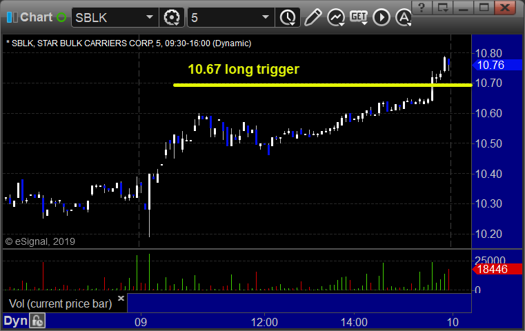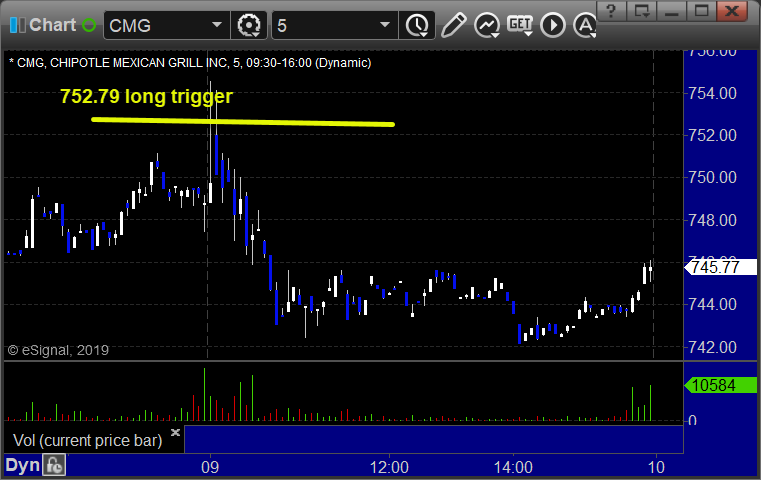 From the Messenger/Tradesight_st Twitter Feed, Rich’s CMG triggered long (with market support due to opening 5 minutes) and worked enough for a partial, but hard to get:
