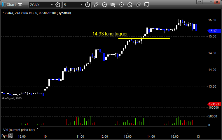 With each stock’s recap, we will include a (with market support) or (without market support) tag, designating whether the trade triggered with or without market directional support at the time. Anything in the first five minutes will be considered WITHOUT market support because market direction cannot be determined that early. ETF calls do not require market support, and are thus either winners or losers.