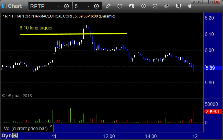 With each stock’s recap, we will include a (with market support) or (without market support) tag, designating whether the trade triggered with or without market directional support at the time. Anything in the first five minutes will be considered WITHOUT market support because market direction cannot be determined that early. ETF calls do not require market support, and are thus either winners or losers.