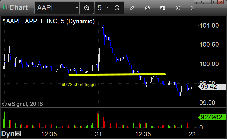 From the Messenger/Tradesight_st Twitter Feed, Rich’s AAPL triggered short (with market support) and worked: