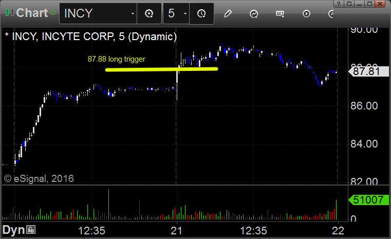 From the report, INCY triggered long (without market support) and worked great: