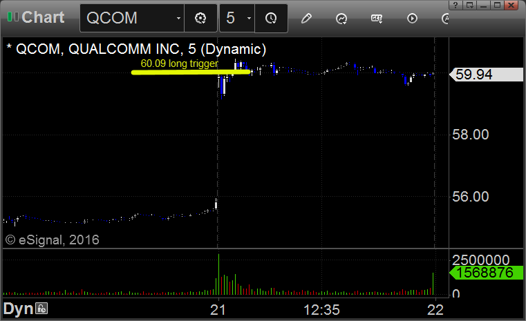 Rich’s QCOM triggered long (without market support) and worked enough for a partial: