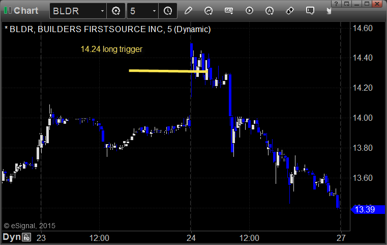 From the report, BLDR triggered long (without market support due to opening 5 minutes) and worked enough for a partial: