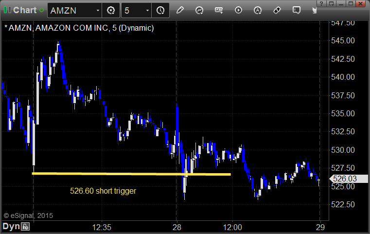 From the Messenger/Tradesight_st Twitter Feed, AMZN triggered short (with market support) and worked: