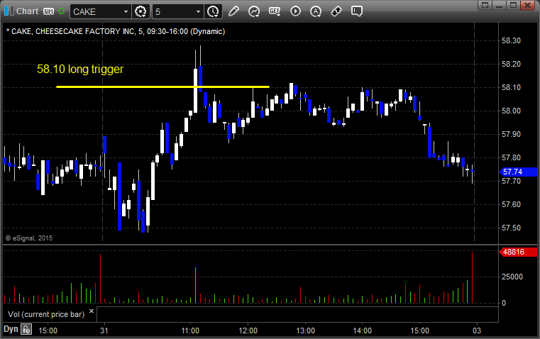 From the report, ENTA gapped over the trigger, so no play, although it did fill the gap and then trigger, which is valid too based on our teachings.