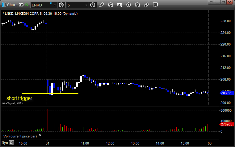 From the Messenger/Tradesight_st Twitter Feed, Mark’s LNKD triggered short (with market support) and worked for a couple of points: