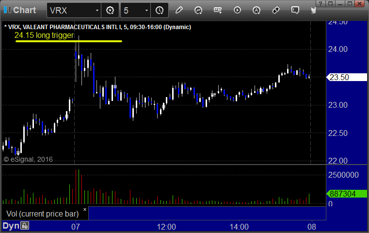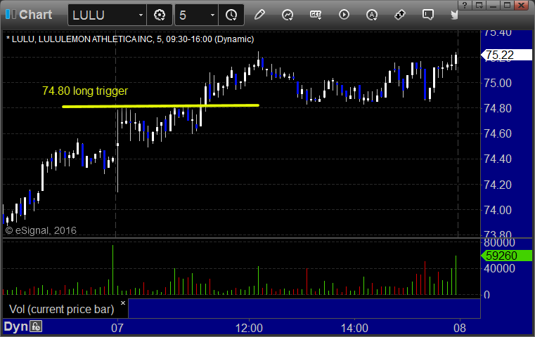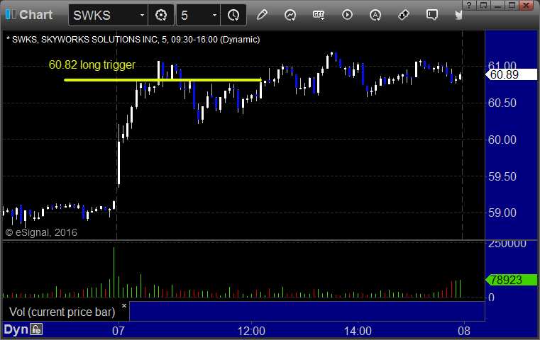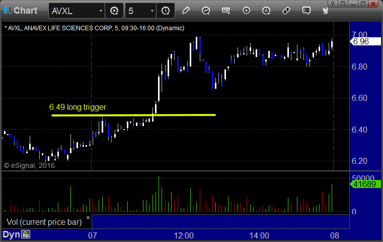 With each stock’s recap, we will include a (with market support) or (without market support) tag, designating whether the trade triggered with or without market directional support at the time. Anything in the first five minutes will be considered WITHOUT market support because market direction cannot be determined that early. ETF calls do not require market support, and are thus either winners or losers.