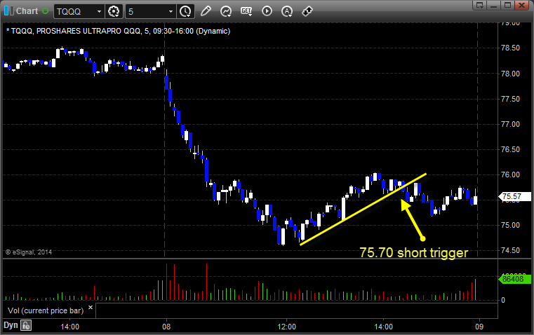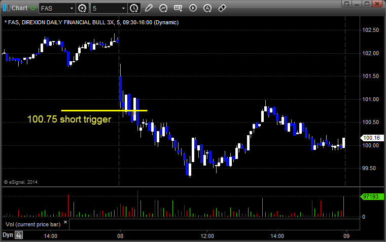 From the Messenger/Tradesight_st Twitter Feed, Rich’s FAS triggered short (ETF, so no market support needed) and worked: