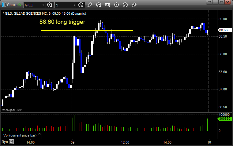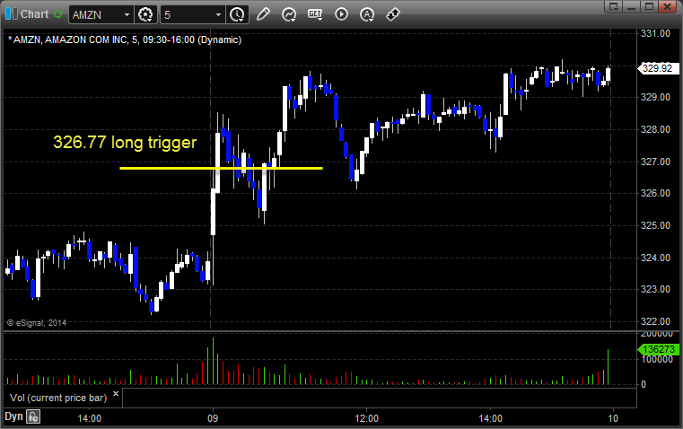 With each stock’s recap, we will include a (with market support) or (without market support) tag, designating whether the trade triggered with or without market directional support at the time. Anything in the first five minutes will be considered WITHOUT market support because market direction cannot be determined that early. ETF calls do not require market support, and are thus either winners or losers.