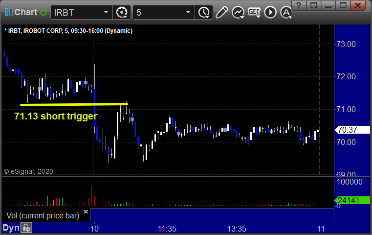 From the report, IRBT triggered short (without market support due to opening 5 minutes) and worked enough for a partial: