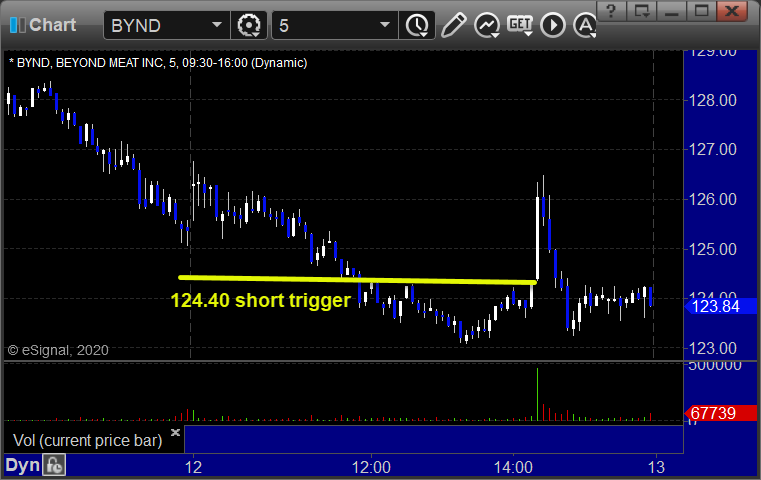 From the Messenger/Tradesight_st Twitter Feed, BYND triggered short (without market support) and worked: