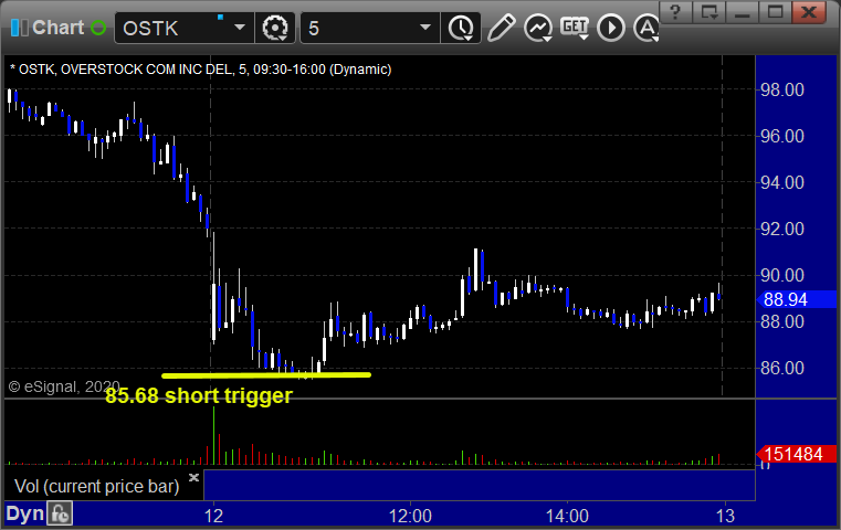 Rich’s OSTK triggered short (without market support) and didn’t work: