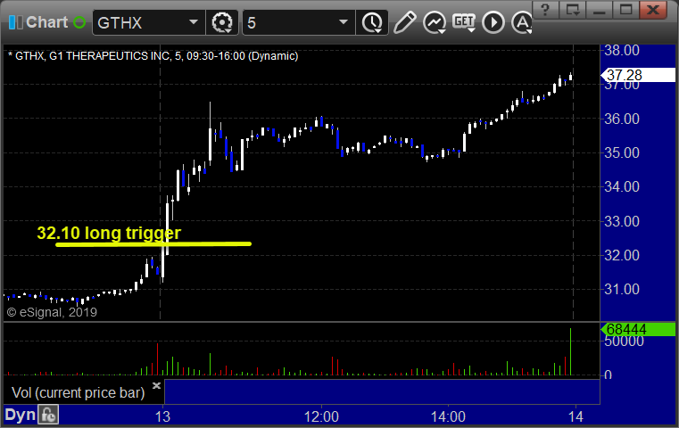From the report, GTHX triggered long (without market support due to opening 5 minutes) and worked: