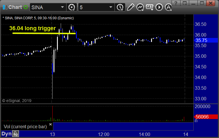 SINA triggered long (with market support) and worked enough for a partial:
