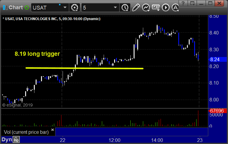 In total, that’s 2 trades triggering with market support, both of them worked, plus another daily chart that worked in USAT.