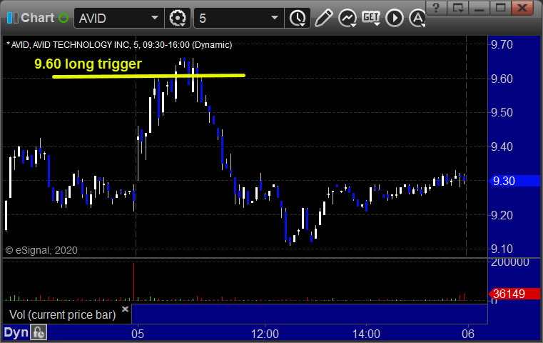 With each stock’s recap, we will include a (with market support) or (without market support) tag, designating whether the trade triggered with or without market directional support at the time. Anything in the first five minutes will be considered WITHOUT market support because market direction cannot be determined that early. ETF calls do not require market support, and are thus either winners or losers.