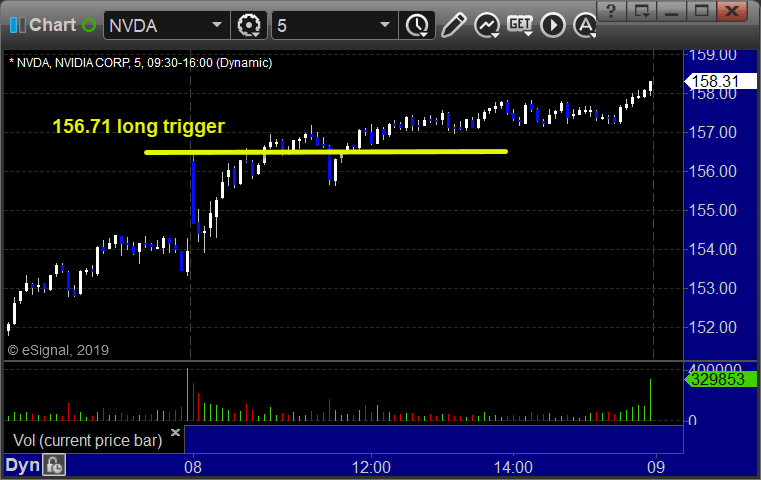 With each stock’s recap, we will include a (with market support) or (without market support) tag, designating whether the trade triggered with or without market directional support at the time. Anything in the first five minutes will be considered WITHOUT market support because market direction cannot be determined that early. ETF calls do not require market support, and are thus either winners or losers.